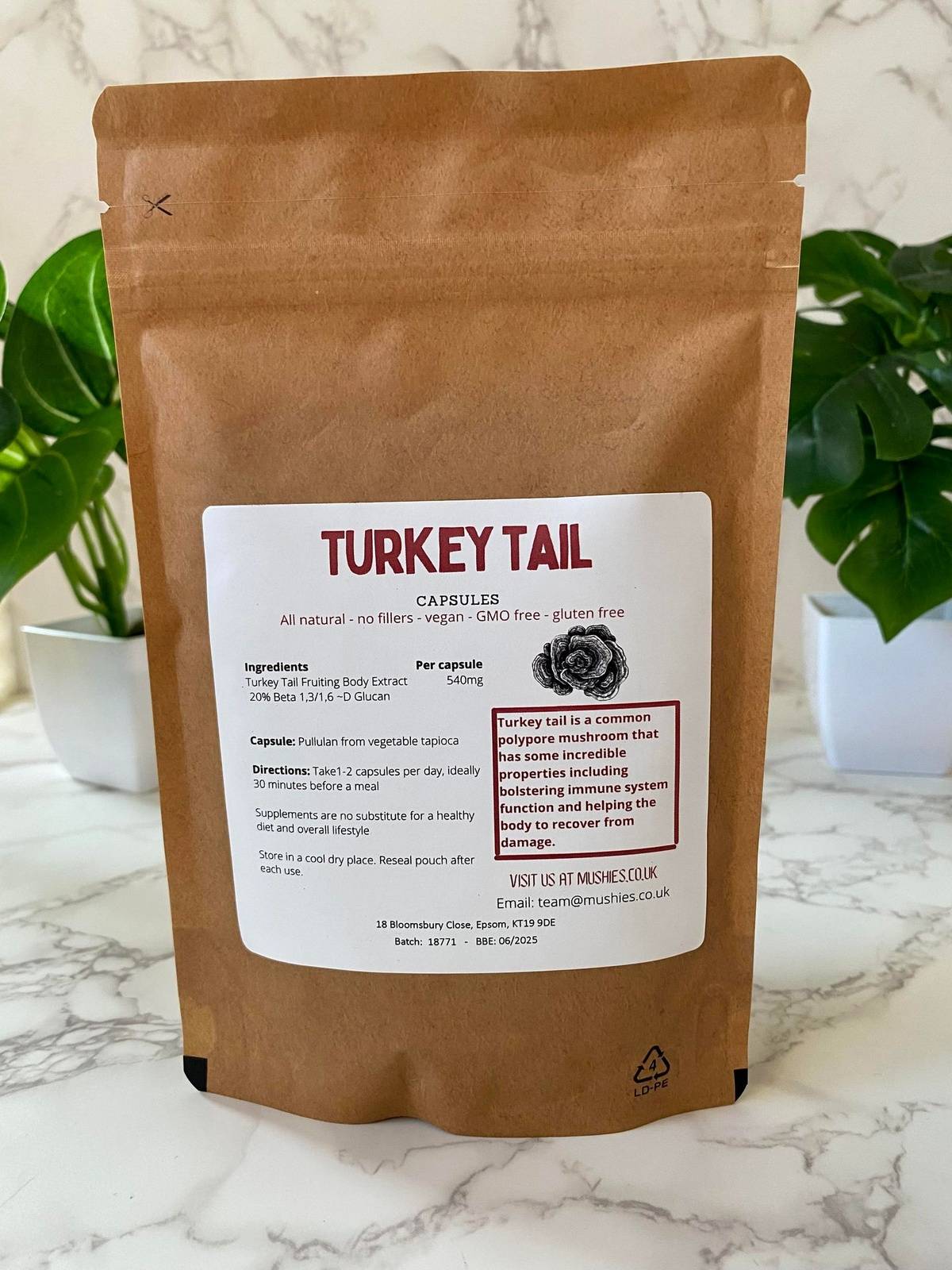 - 🌿 100% natural & vegan: At Mushies, we believe in providing you with clean and pure mushroom extracts. Our Turkey Tail extract is grown traditionally and organically on hardwood sticks, making it 100% vegan-friendly.